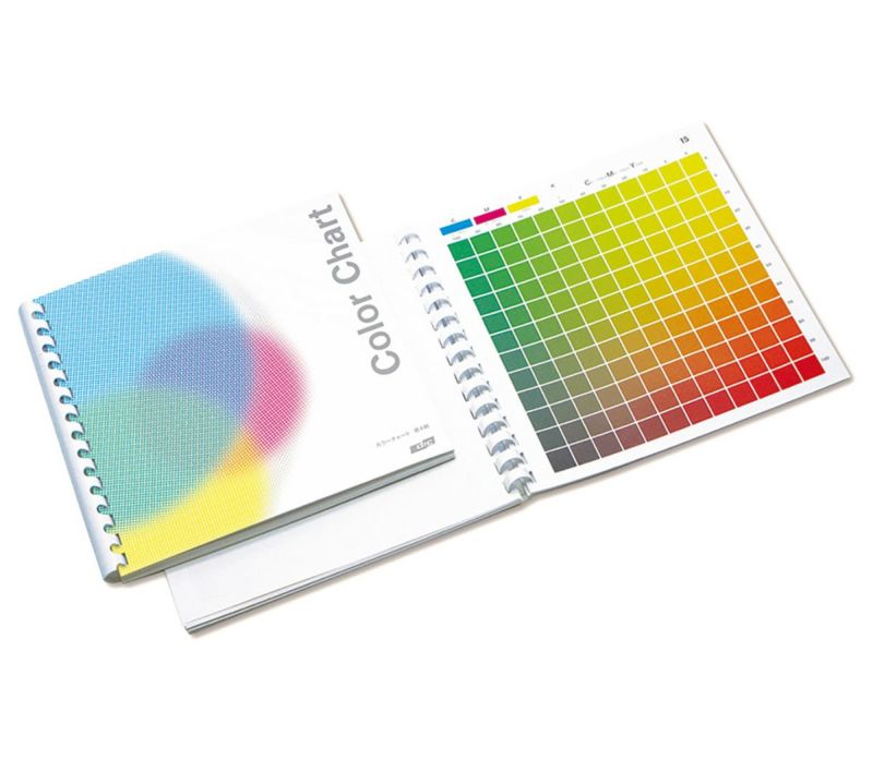 セルリング綴じのプロセス4色掛け合わせ一覧表。片面印刷で、精緻な色確認 に最適なデスク用カラーチャートです。 網点% :0、5、10、20、30、40、50、60、70、80、90、100%の12段刻み チャート数:33 規格 :200×19mm