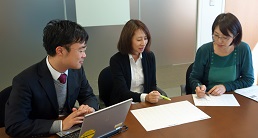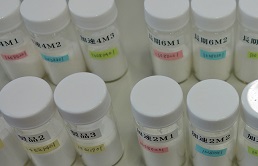 色見本を作る経緯 E社様は、医薬品や食品添加物原料を販売しています。それら製品の規格色を判定する色見本を作製したいと考えていました。自社のプリンターで色見本を試作して主観評価なども行いましたが、これだという色の再現が難しく苦労されていました。 E社の大倉野様、佐村様、伊藤様(左から) DICカラーストアとの出会い 幅広い分野で色指定に利用されているDICカラーガイド色見本帳のメーカーであるDICグラフィックスのHPで「オリジナル色見本を作るならDICカラーストア」というバナーが目にとまり、そこで、自社の考えている色見本が作製可能かどうか問合せをされました。 DICカラーストアは、テンプレートから色見本の種類を選び色を指定することにより、オリジナルの色見本を作ることができるWebショップです。通常はネットでやり取りが完了しますが、今回の限度見本は既存のテンプレートでは対応できないため、実際にお会いして、限度見本に対する要望をお聞きして対応可能かどうか検討が始まりました。 E社食品添加物原料のサンプル 色見本が完成するまで 製品が粉体であること、また、再現したい色が白色から僅かに有色となる淡い色であることから、色見本の作製は難しいと思われましたが、実現できるかどうか挑戦してみることになりました。